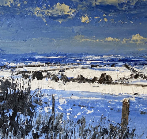 image on right: 'Snow Covered Fields' by Colin Carruthers , acrylic on board, framed