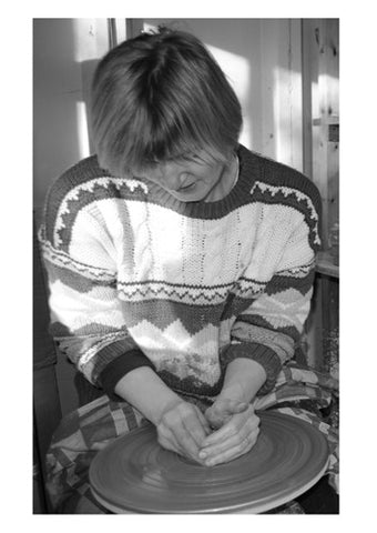 Her pots are hand thrown on the wheel and she also hand-builds using sheets of white clay.