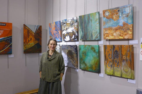 ARTIST STATEMENT: ‘’I am a self-taught artist. My background working outdoors has honed my eye for colour, patterns of form and light, ‘sense of place’, landscape history and it is these qualities that inspire me to paint. I work in acrylics and mixed media on a variety of surfaces. My work includes both realistic detail and stylised abstraction at differing scales that emphasise pattern to conjure the essence of place. I work from a mixture of outdoor sketches, found objects, photographs, memory and imagination.’’