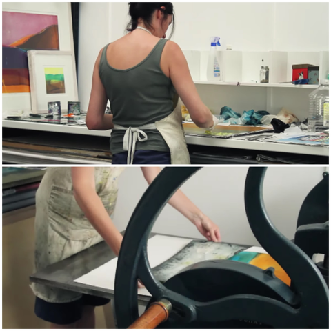 Louise's prints are primarily concerned with the landscape. Some are based on childhood memories, reflecting on the countryside and coast of the west of England. Other have evolved from small paintings and drawings done on location from sketch books. She exhibits a strong use of colour combined with an individual and sensitive line drawing technique which she uses to create a visual language for her prints and paintings. Louise uses layers of translucent colour and calligraphic marks to emphasis the fluidity of the ever changing elements of nature.