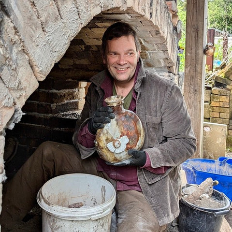 "Originally from rural Lincolnshire, I trained and still work as a molecular biologist but I have always had an interest in studio pottery. I am a member of Sundragon Community Pottery located in Balsall Heath and I am very much influenced by the work of artist potters working in the so-called ‘Leach tradition’ including, amongst others, Jim Malone, Phil Rogers and Nic Collins. I make high-fired stoneware and I am particularly drawn to the effects of flame and ash that can be seen on pots fired in wood-burning kilns and I am fortunate enough to have helped fire a number of such kilns across the UK. Firings are very much a team effort and typically last 3- 4 days, requiring constant attention and fuelling with wood to reach and maintain the temperatures of 1250-1300oC needed for glazing to occur. Firing the kiln is an exhausting process and I sometimes vow ‘never again’ but a week later, when the kiln has cooled and is opened, all the aches, pains and sleep deprivation are forgotten as the results are revealed. Unlike other, more predictable, methods of firing pots opening a wood-fired kiln can be a fraught business and failures are commonplace but, when it all comes together, the results can be both unexpected and magical"