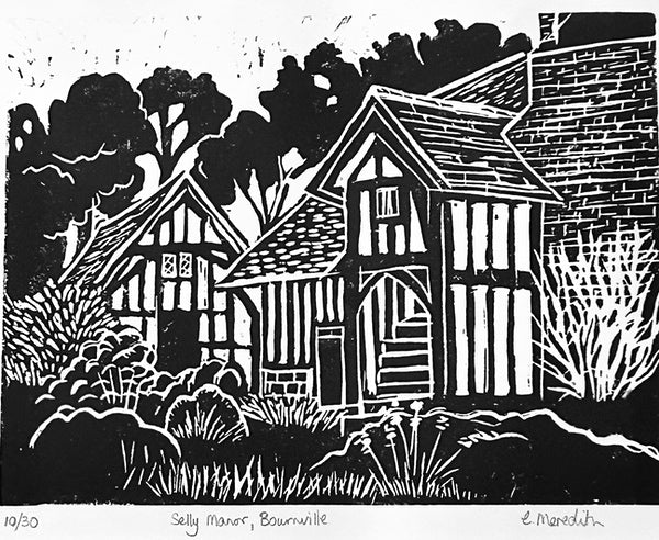 Selly Manor 10/30. Linoprint; FRAMED (CM37)