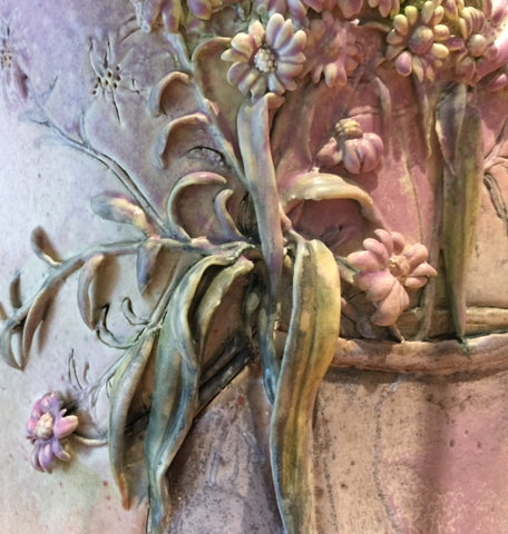 Elaine’s work is always made with porcelain and is semi or non-functional and usually involves a lot of modelling. She pays attention to detail and her work has an element of representationalism or illustration about it. Her main subjects are natural forms, especially flowers, although she also uses still life themes including decorative handbags and shoes which she collects. She tries to capture the spirit of the subject in a free and sculptural way - never photographically.